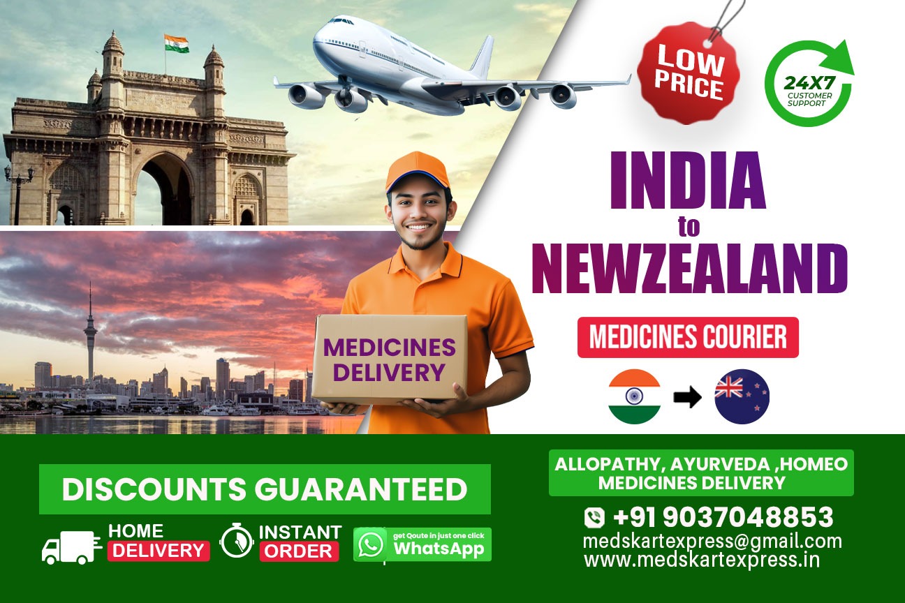 Medskart Express is the cheapest medicine courier from India to Newzealand . Just whatsapp medskart to find out the rates; we are charging much less than others